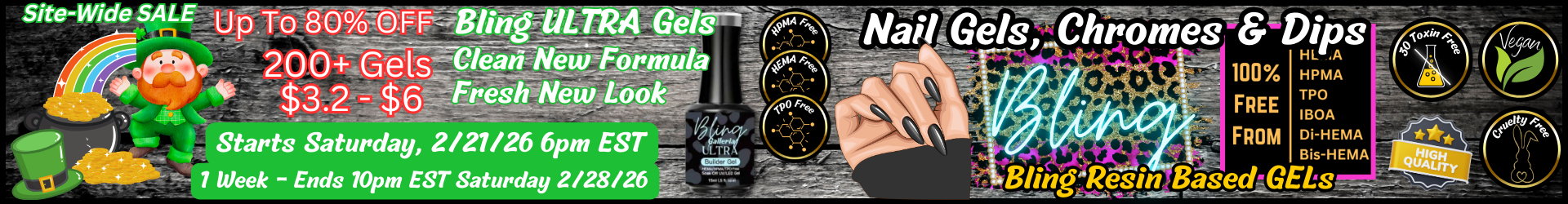 All Bling Gels are HEMA, HPMA, TPO, Di-HEMA, Bis-HEMA, IBOA, IBOMA FREE....