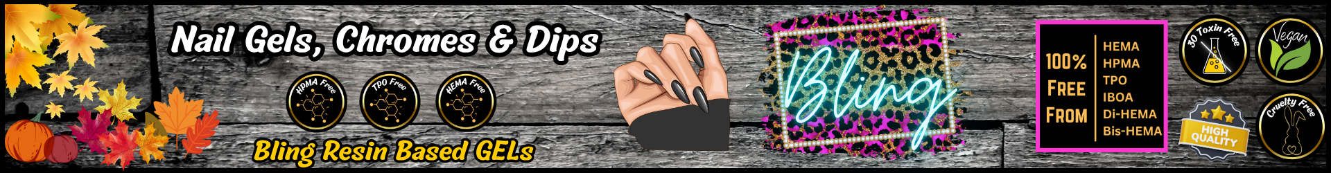 All Bling Gels are HEMA, HPMA, TPO, Di-HEMA, Bis-HEMA, IBOA, IBOMA FREE.Â