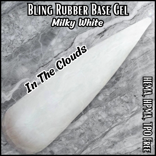 -In The Clouds- A gorgeous milky white rubber base gel. This gel will be semi-transparent with one layer and opaque with three layers. It will also create a beautiful and natural ombre effect between the nail bed and free edge.