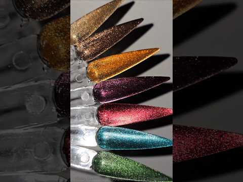 Cat eye gels have earned their name from the narrow line of light that shimmers in the middle of the nail polish that resembles the eye of a cat. When a magnet is held over the nail, the magnetic particles inside the gel polish creates that iconic, galactic effect. Cat eye gels can be painted on normally or used along with a magnet to achieve the cat eye look.
