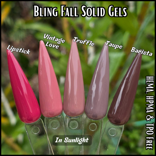 >Bling's Resin Based Gels are HEMA, HPMA, TPO, Di-HEMA, Bis-HEMA, IBOA, IBOMA Free.